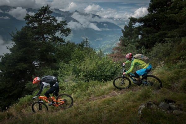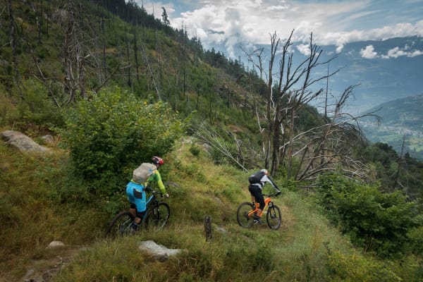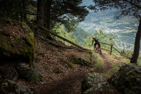 Ein toller Trail mit einem Höhenunterschied von 900 Metern, der Sie durch dichten Kiefernwald und offene Wälder führt, wo einst ein Waldbrand war, der den Blick auf die umliegenden Berge freigibt. An einem klaren Tag können Sie neben unzähligen anderen Bergen Grivola, Monte Emilius und einen Teil des Monte Bianco-Massivs von der Spitze des Weges aus sehen.