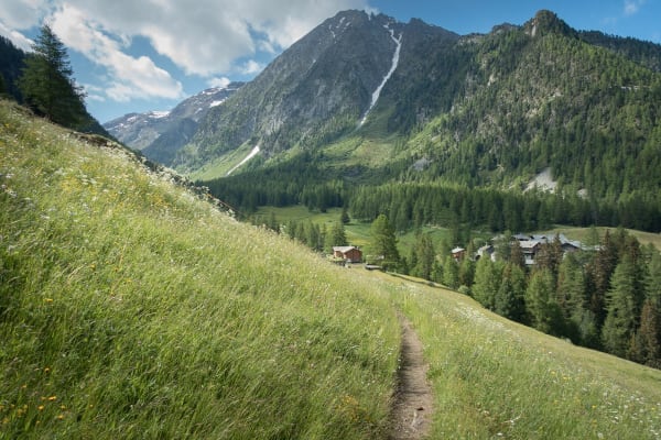 Prendete la telecabina Crest dal centro di Champoluc e scendete lungo la strada sulla vostra destra quando uscite dalla telecabina. Il sentiero inizia in fondo alla strada. Quando attraversi il fiume, è segnato 13A.